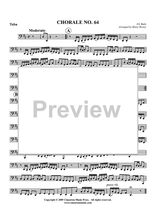 Digital Sheet Music for Chorale No. 64 - Tuba by Henry Howey, Johann Sebastian Bach scored for Brass Ensemble; id:416497