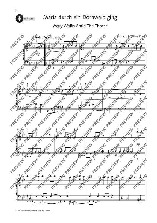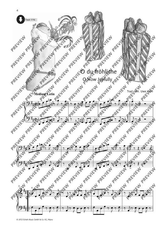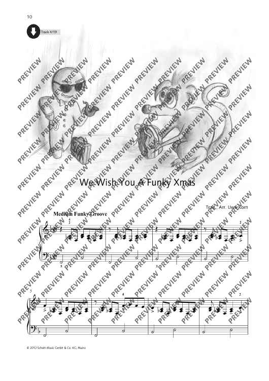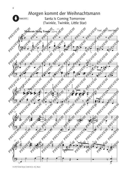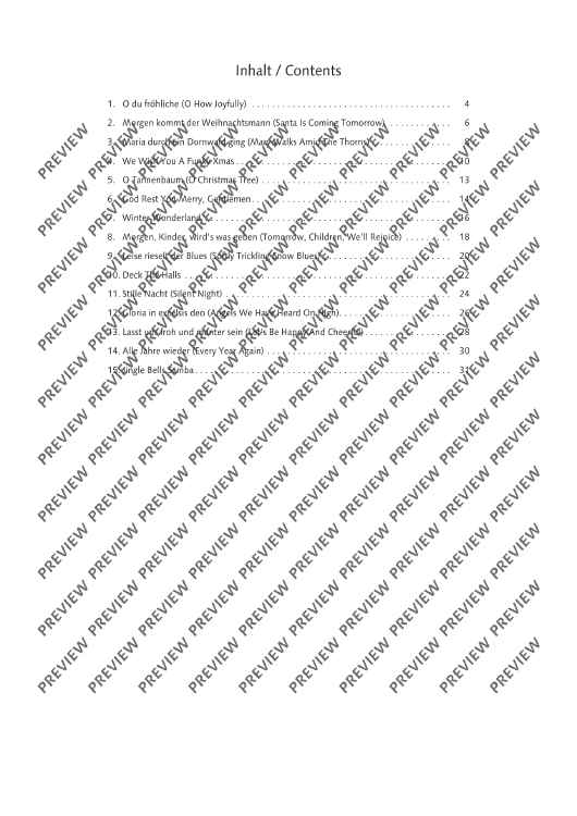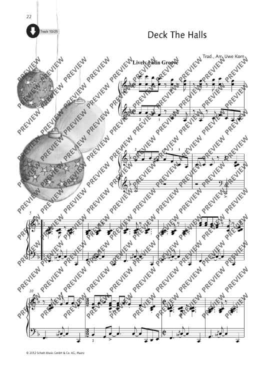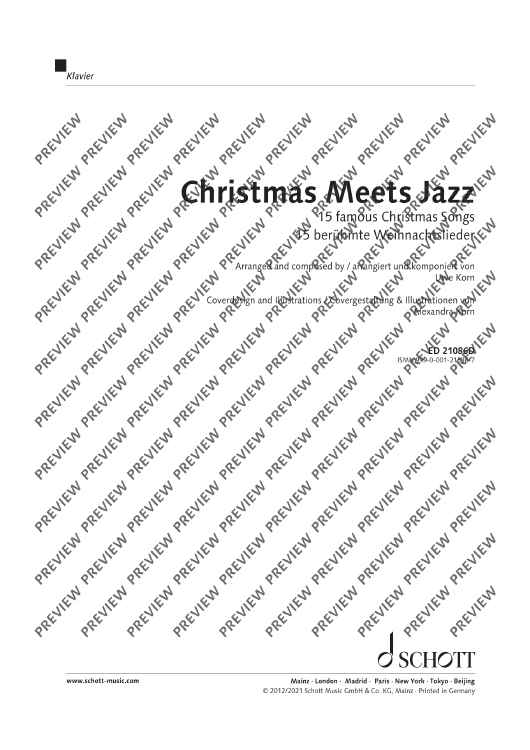 'Christmas Meets Jazz' contains 15 popular Christmas carols in jazzy arrangements for the piano and continues the successful '… Meets Jazz' series by the composer-arranger Uwe Korn. The styles of this edition range from jazz ballads to rocking and swinging rhythms to the lively 'Jingle Bells Samba'. The accompanying audio tracks contain both a piano solo version and a version for piano with band and include play-along versions. Jazz up your Christmas!
