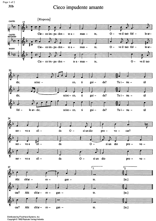 Digital Sheet Music for Cieco impudente amante by , Alessandro Orologio scored for SATB Choir; id:333804