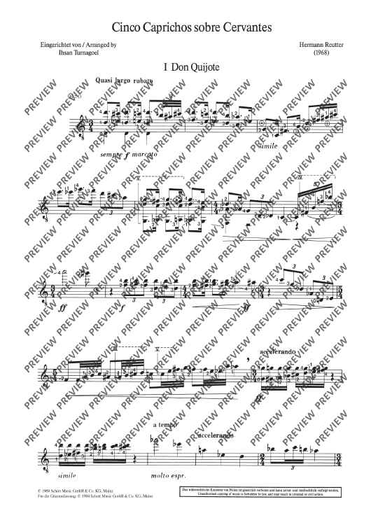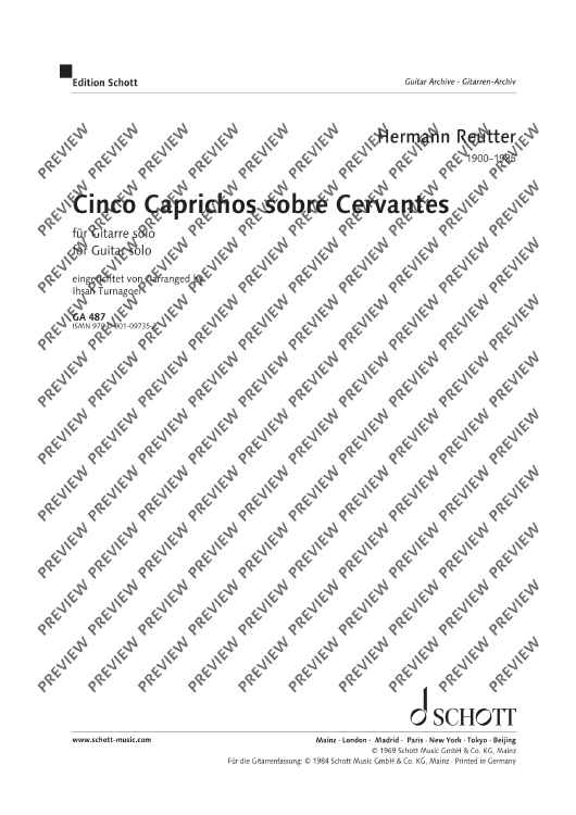 Digital Sheet Music for Cinco Caprichos sobre Cervantes by Hermann Reutter scored for Guitar; id:497220