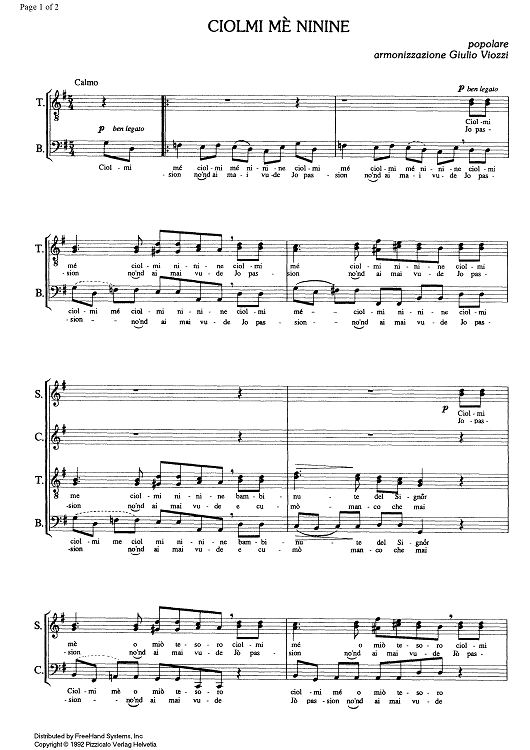 Digital Sheet Music for Ciolmi mè ninine by , Giulio Viozzi, Traditional scored for SATB Choir; id:334476
