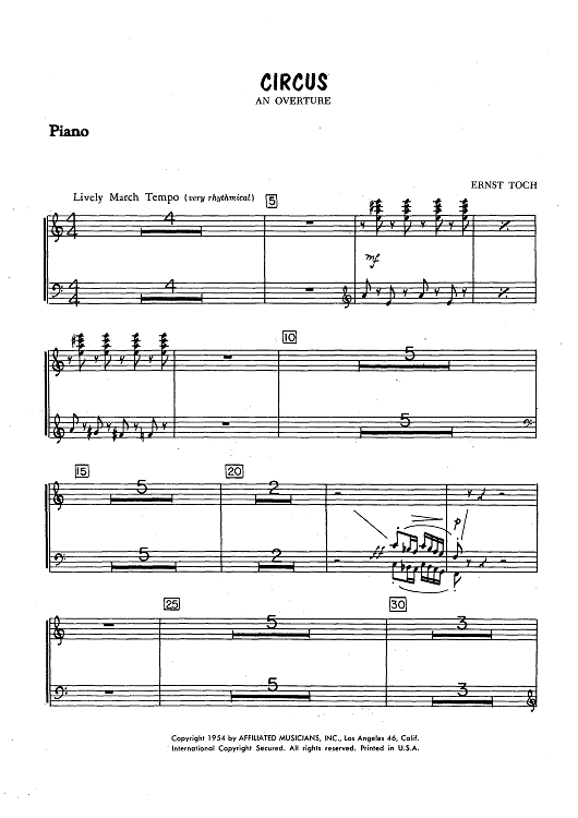 "Circus - An Overture - Piano" Sheet Music by Ernst Toch