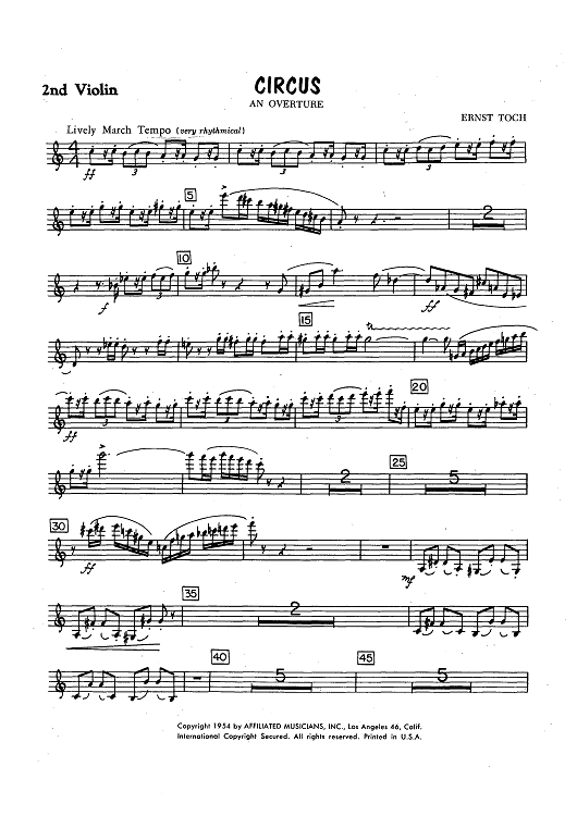 "Circus - An Overture - Violin 2" Sheet Music by Ernst Toch