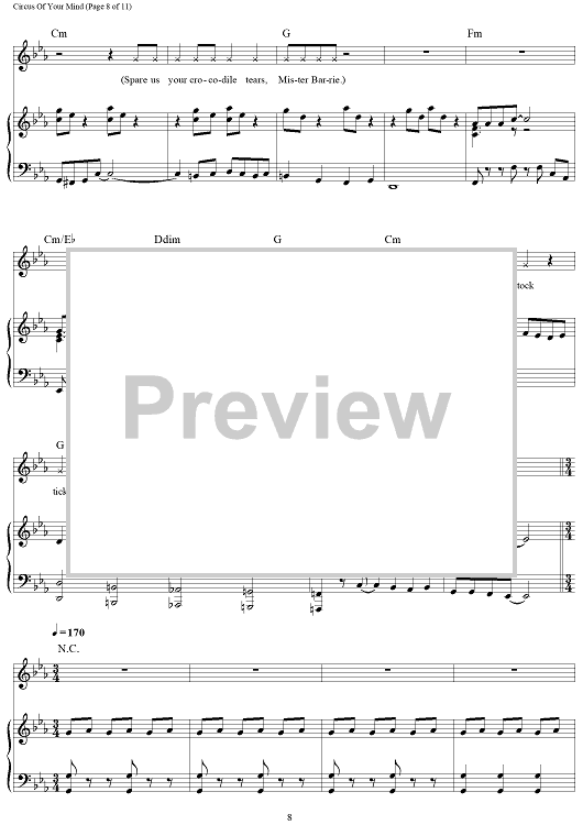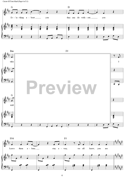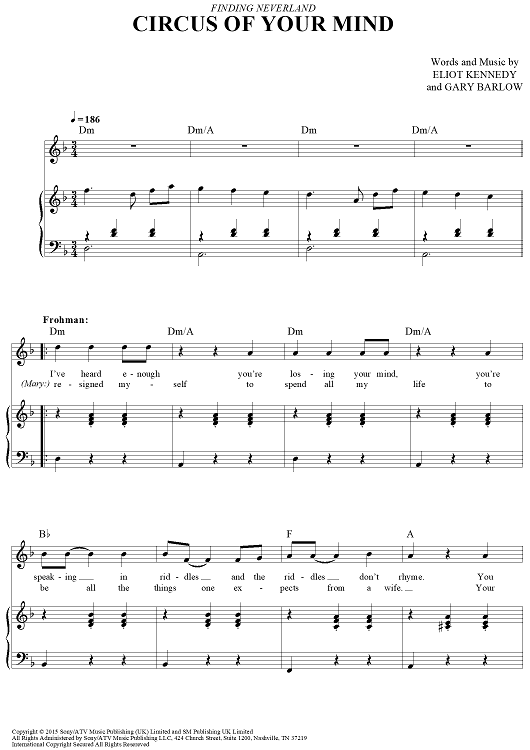 Digital Sheet Music for Circus of Your Mind by Gary Barlow, Eliot Kennedy scored for Piano/Vocal/Chords; id:457061