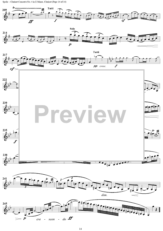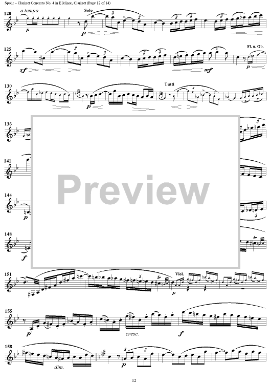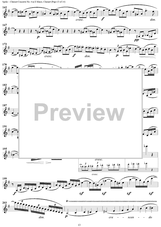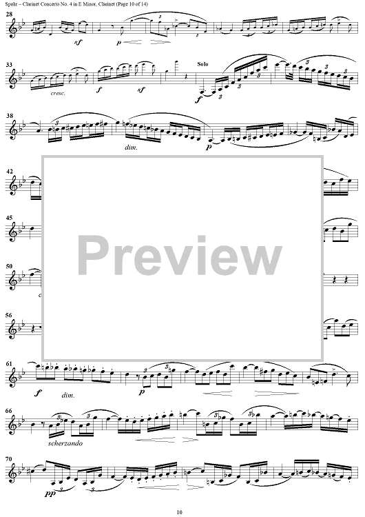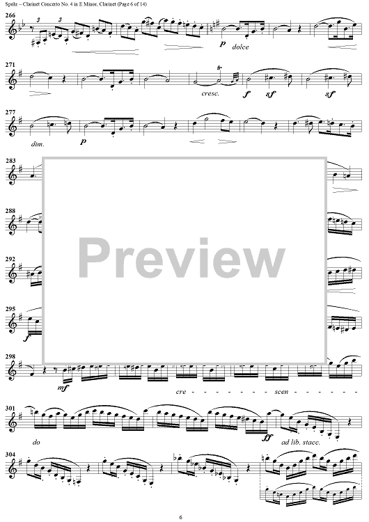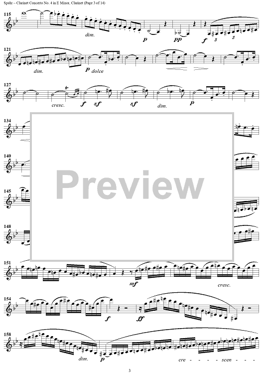 Digital Sheet Music for Clarinet Concerto No. 4 - Clarinet in A by Louis Ludwig Spohr scored for Clarinet/Piano; id:259040