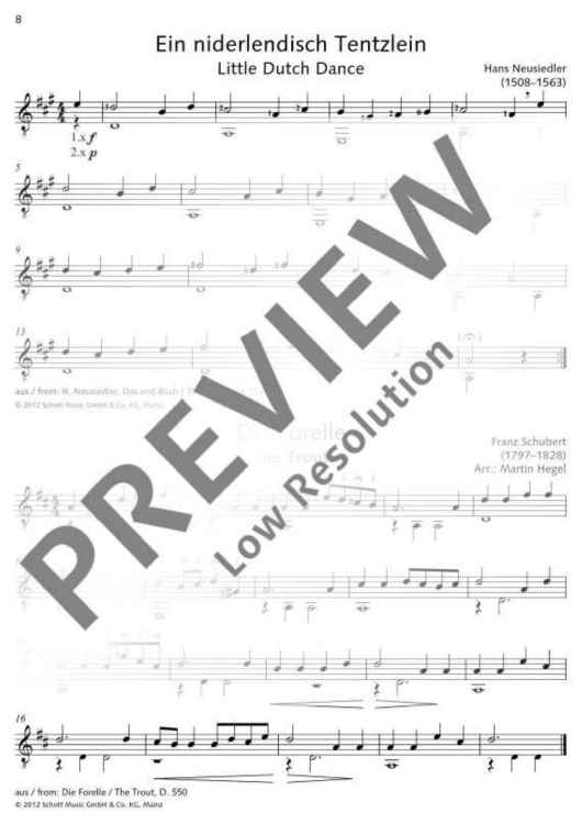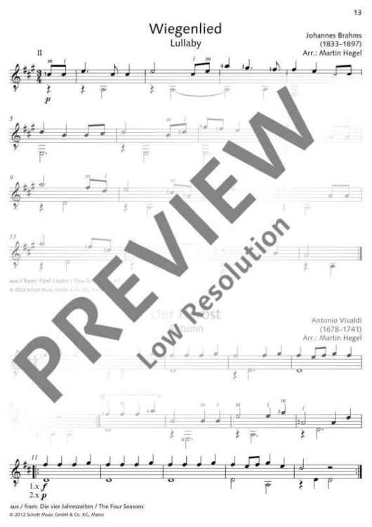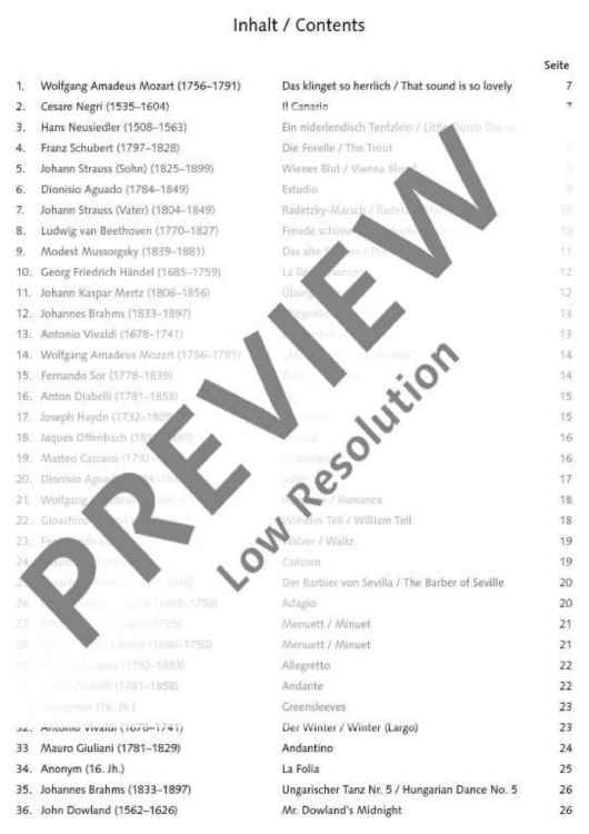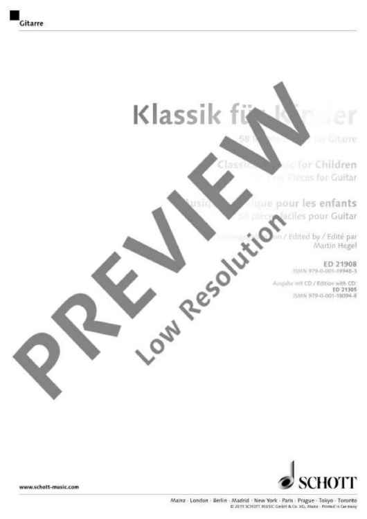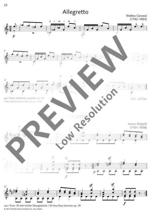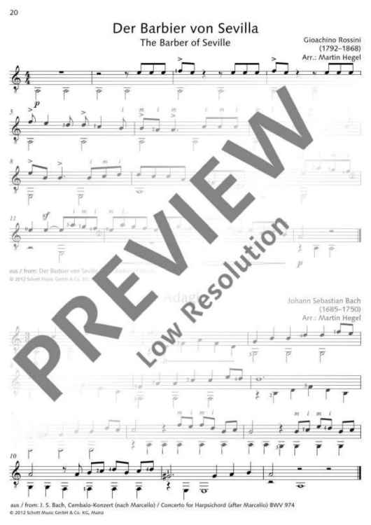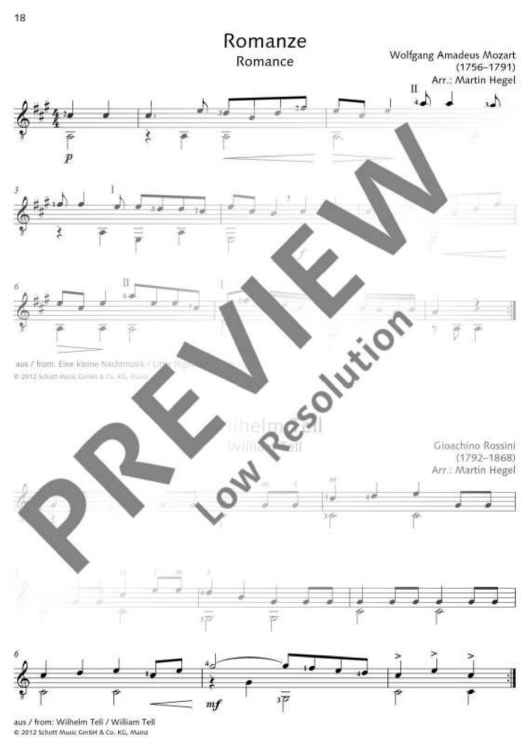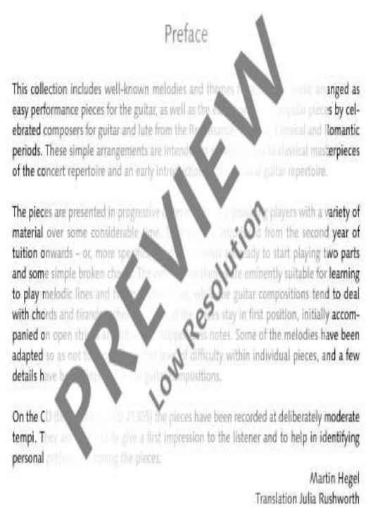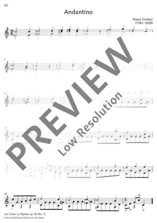 This volume contains everything needed for guitar lessons: 58 easy original guitar pieces by Aguado, Mertz, Diabelli, Carulli, Sor or Carcassi, but also easy-to-play arrangements of classical music from the fields of orchestral music, chamber music or opera. Among them are themes from Vivaldi's Four Seasons, from Handel's Music for the Royal Fireworks, Mozart's Magic Flute, Beethoven's Symphony No. 9 or Verdi's Chorus of the Hebrew Slaves. It is this volume's concern to make classical masterpieces of concert literature accessible to children by means of such rather easy arrangements and make them enjoy classical music.