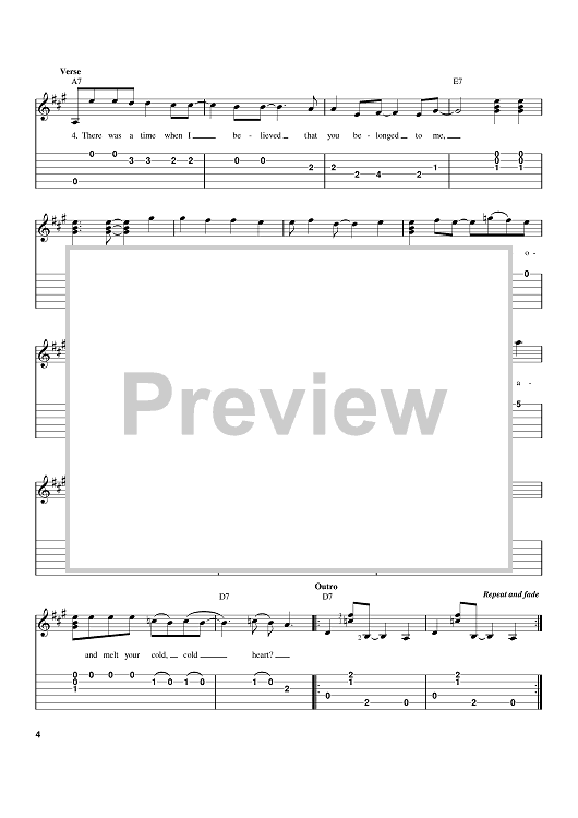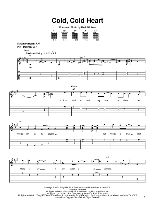 Digital Sheet Music for Cold, Cold Heart by Hank Williams, Tony Bennett, Norah Jones scored for Easy Guitar Tab; id:371404
