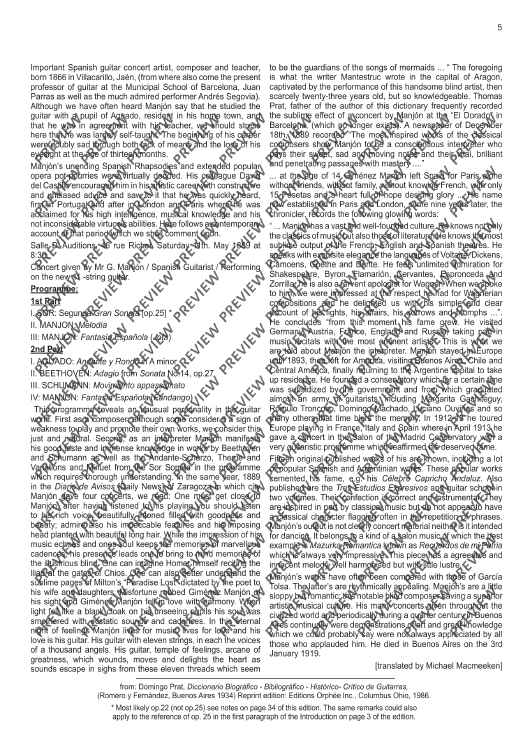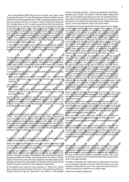 A contemporary of Albéniz, the highly literate blind guitarist Manjón (1866-1919) apparently started his guitar studies with a pupli of Aguado. He enjoyed a high reputation. A young Miguel Llobet was so impressed after hearing him that he decided to dedicate himself to the guitar and Austín Barrios asked him for lessons. We are proud to present this volume of Manjón's music which combines both Flamenco and Latin-American elements to give an innovative and unique blend of guitar music. Revised edition 2023