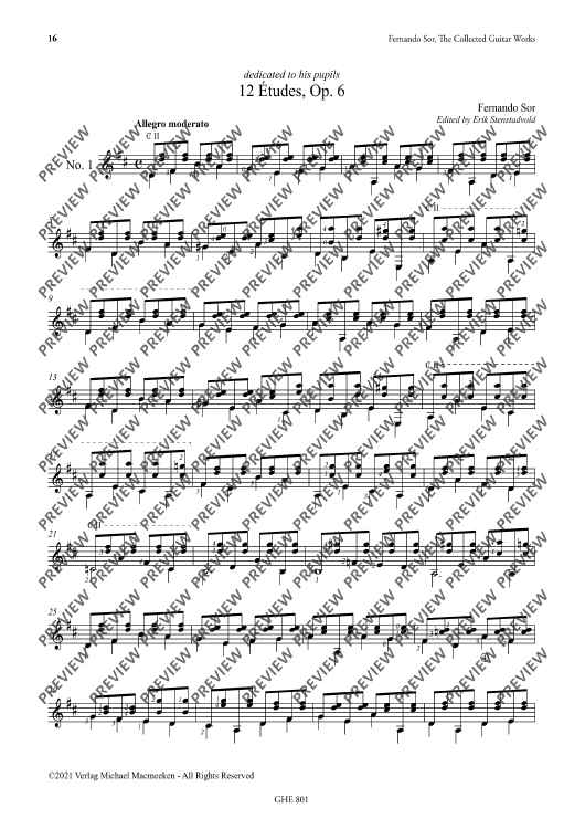 We proudly present a new critical edition of the collected guitar works by Fernando Sor. Some titles in this edition may be new to some readers, eg the contents of volume 10. This new edition is the biggest new publishing undertaking for the music of Sor since the 1970s. Our editor Erik Stenstadvold is a noted expert on 19th century guitar music and publishes regularly in leading professional journals such as ‘Soundboard’ and ‘Early Music’. His life-long preoccupation with Sor and his music, both as a performer and researcher, has resulted in an unsurpassed edition in terms of scholarly accuracy and practical usefulness. All relevant early sources have been consulted, often several different printed editions and manuscripts of a particular work. In each case the most dependable source has been chosen as copy text, on the basis of historical evidence and textual reliability. Variances and errors in the original scores are corrected and discussed in the comprehensive critical commentaries. All volumes contain detailed introductory notes that place the individual works in their historical context and discuss particular notation problems. Suggestions for the interpretation of ornaments are also provided. In Volume 1 and 2 (Studies), Sor’s likely purpose of each individual study is discussed in relation to the technique and fingering principles he describes in his 1830 Méthode. The music scores are produced at ‘concert size’ with clear and accurate music engraving and high-quality German printing. Original fingering is retained, but in order to make the music more accessible to players in general, editorial fingering has been judiciously added in works with little or no indications in the original editions. Added fingerings are easily distinguishable from the original ones by their different typefaces. The guitar duos come with full-size study scores and separate parts. As an optional extra we offer a ‘pocket’ size score with all the duos (188 pages, 17 x 24 cms). Each v
