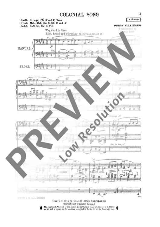 "Colonial Song" Sheet Music by George Percy Aldridge Grainger