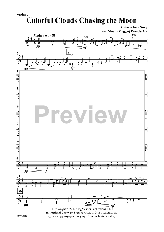 Digital Sheet Music for Colorful Clouds Chasing the Moon - Violin 2 by Traditional, Xinyu (Maggie) Francis-Ma scored for Orchestra; id:507834