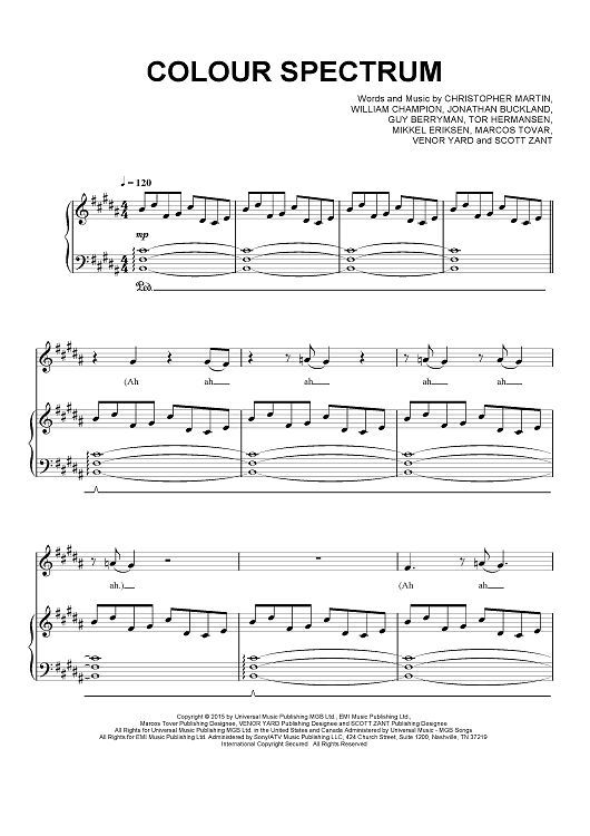 Digital Sheet Music for Colour Spectrum by Chris Martin, Coldplay, Jonny Buckland, Guy Berryman, Tor Hermansen, Mikkel Eriksen, Marcos Tovar, Venor Yard, Scott Zant scored for Piano/Vocal/Chords; id:457140