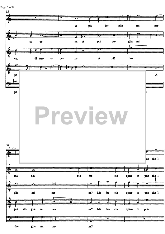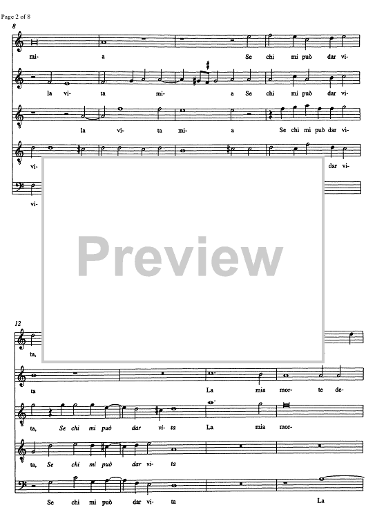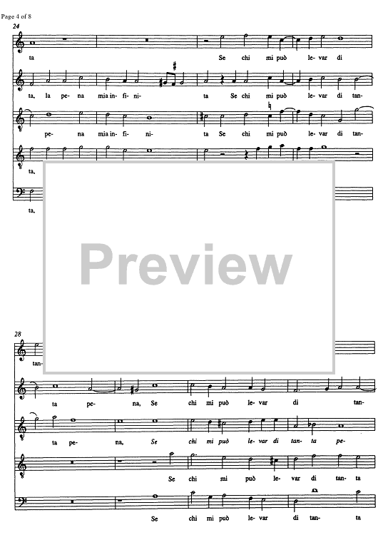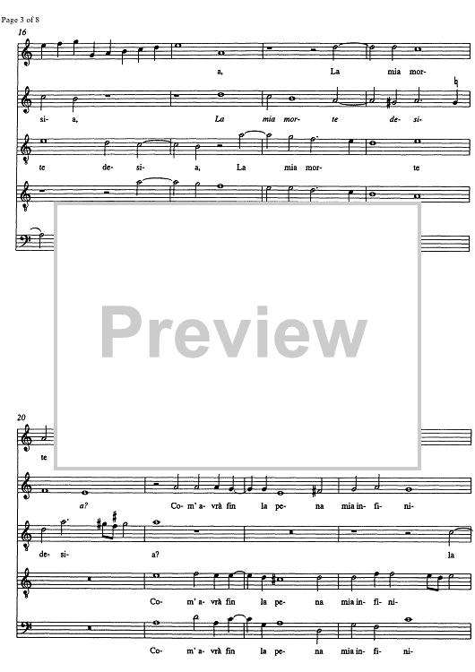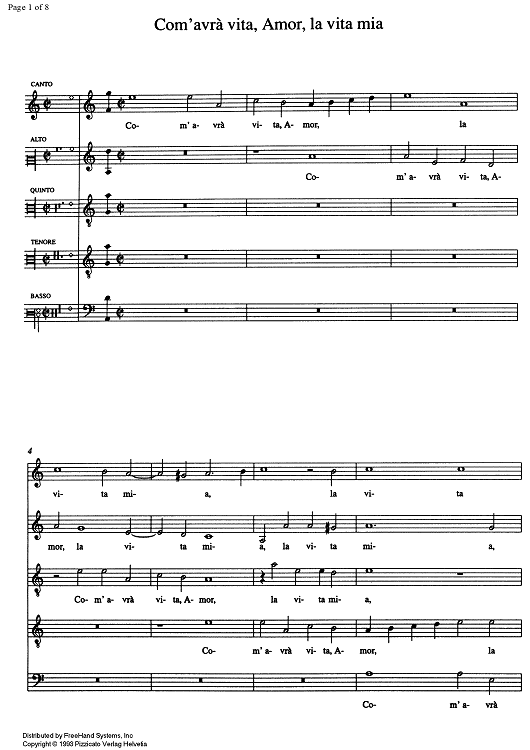 Digital Sheet Music for Com'avrà vita, Amor, la vita mia by , Alessandro Orologio scored for SATB Choir; id:333980