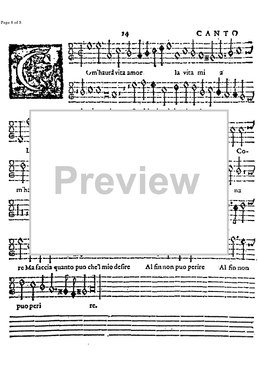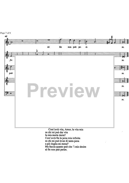 "Com'avrà vita, Amor, la vita mia" Sheet Music by Alessandro Orologio
