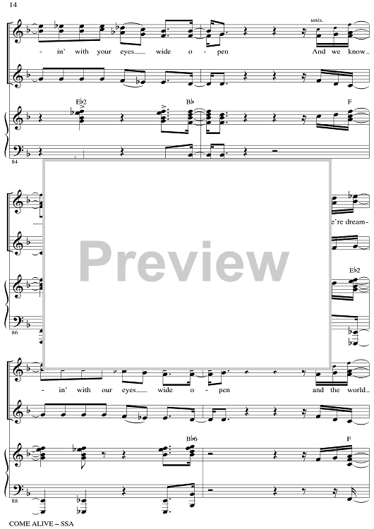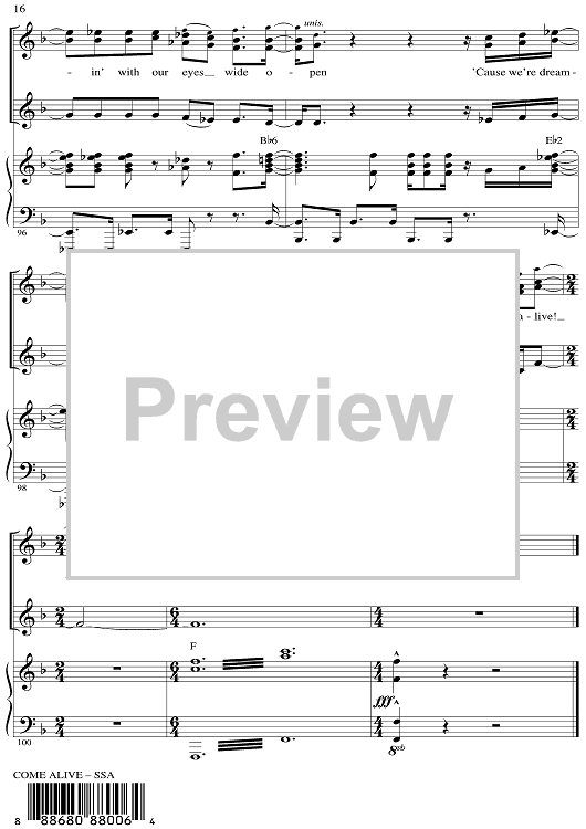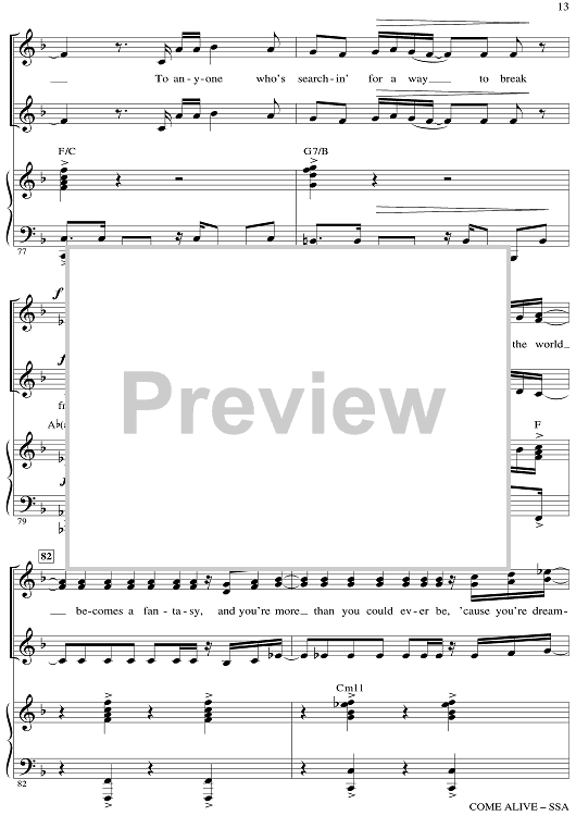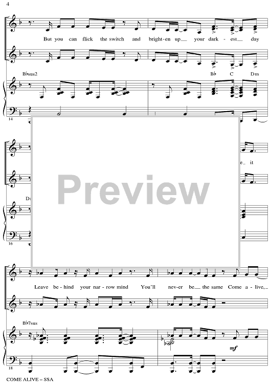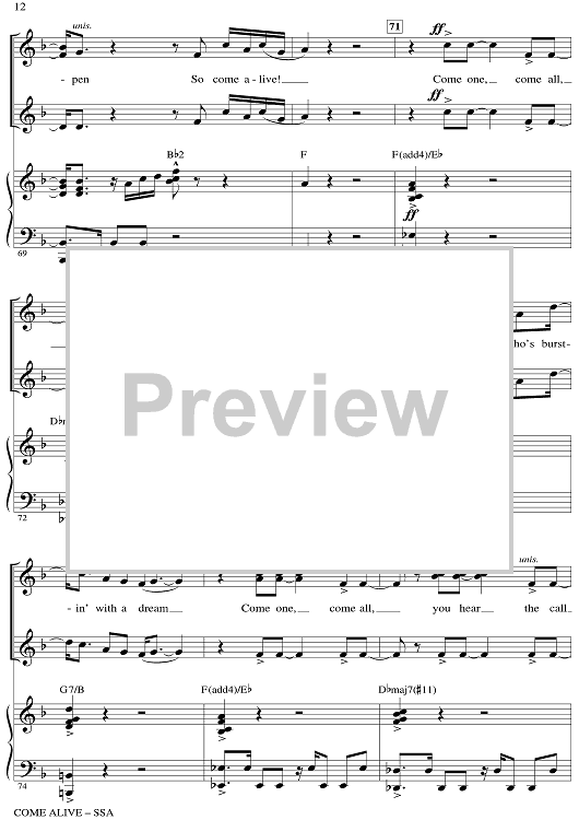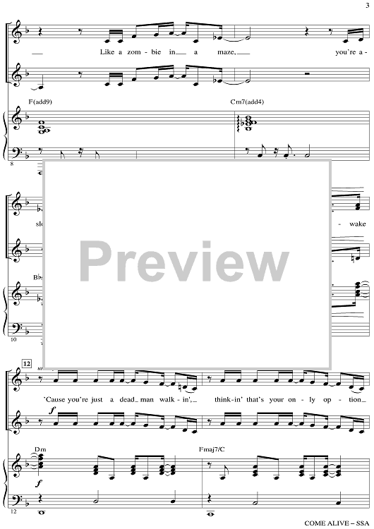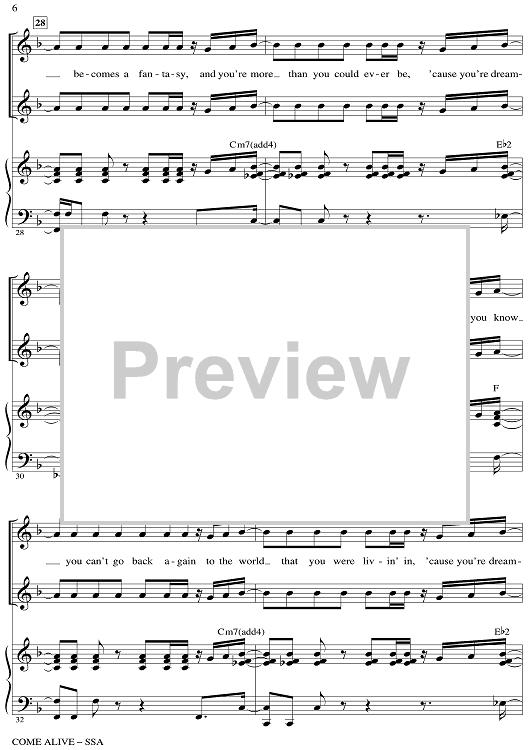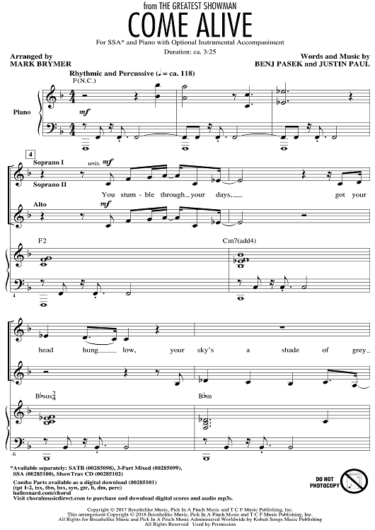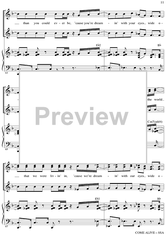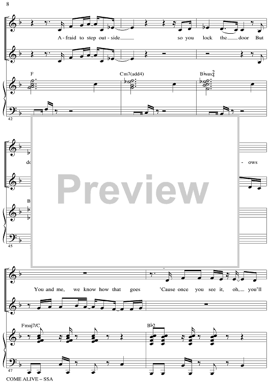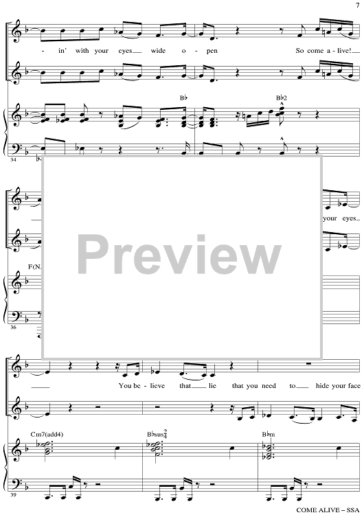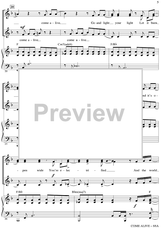 Digital Sheet Music for Come Alive - from The Greatest Showman by Mark Brymer, Benj Pasek, Justin Paul scored for SSA/Piano; id:511261
