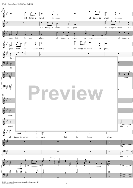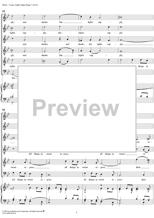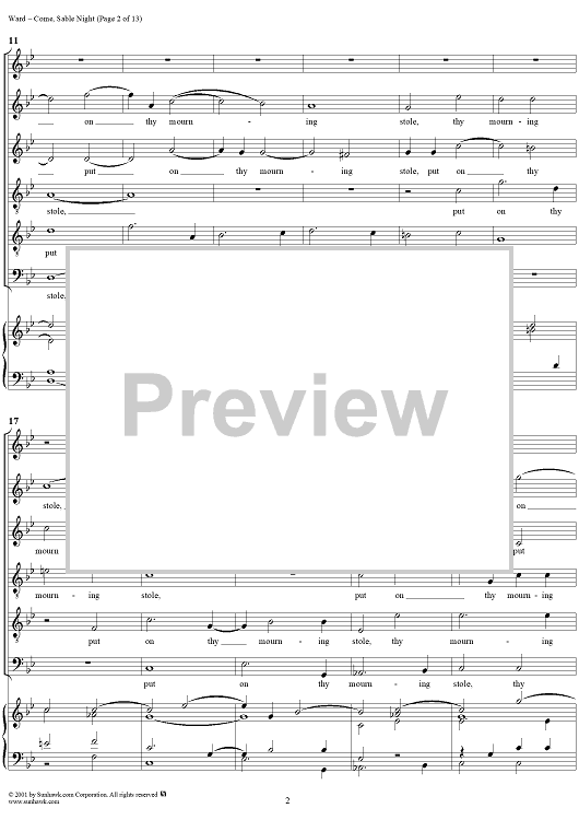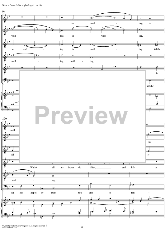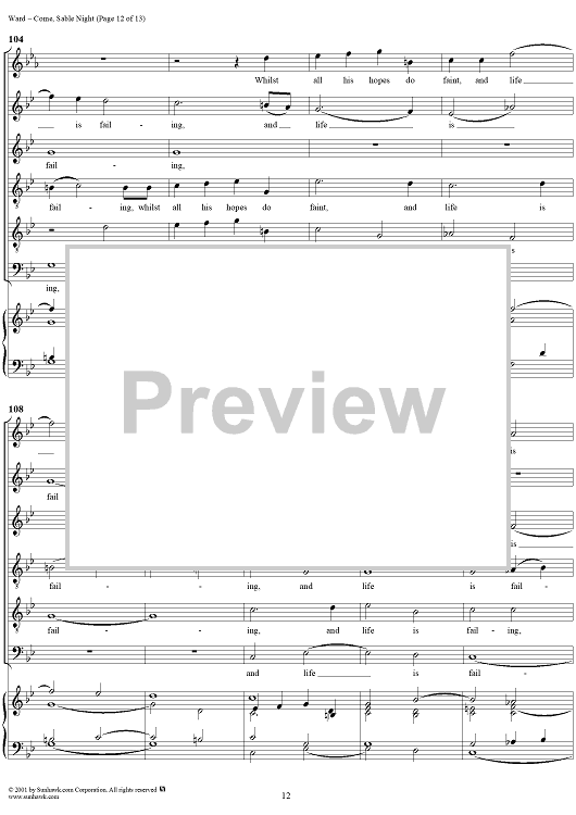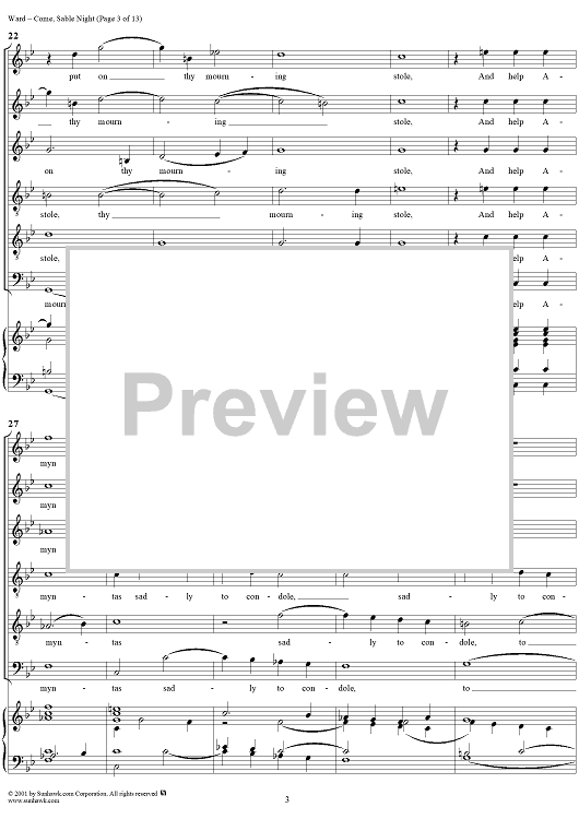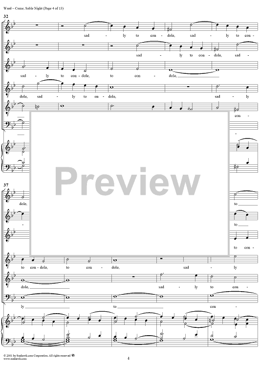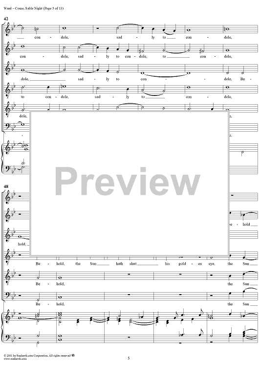 Digital Sheet Music for Come Sable Night by John Ward scored for Mixed Chorus; id:249585