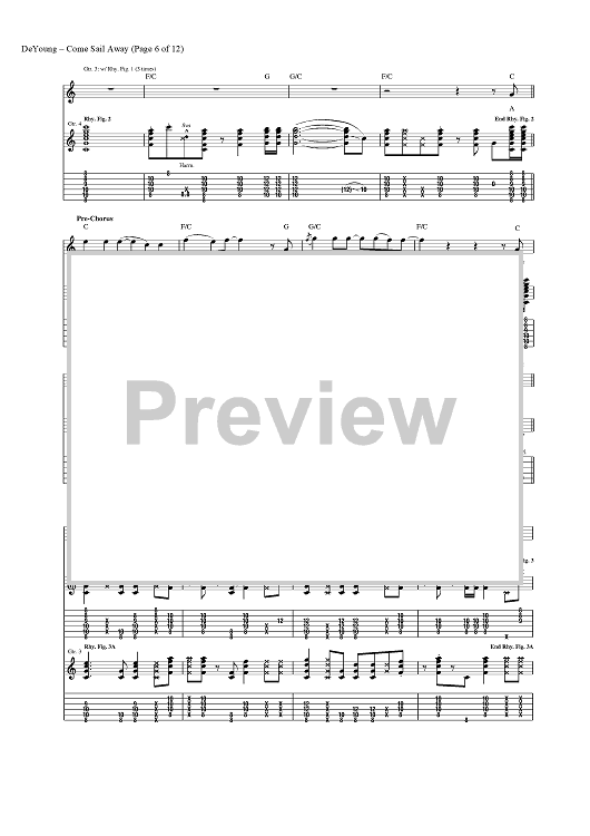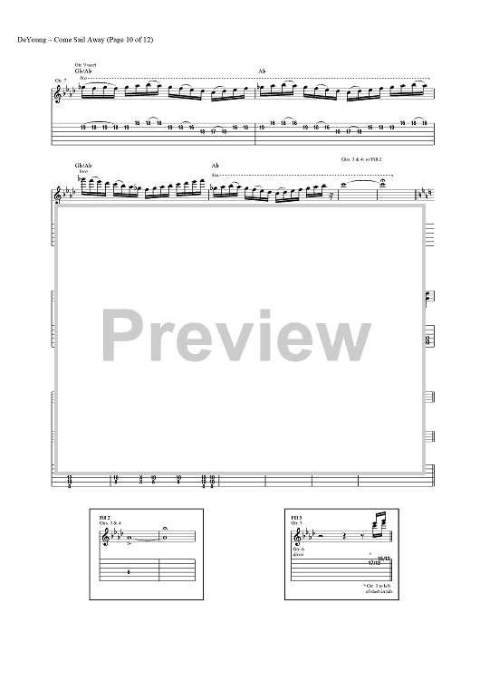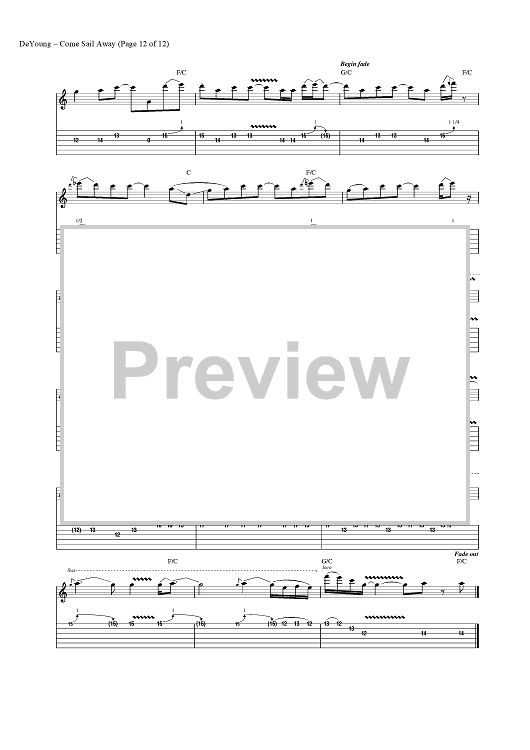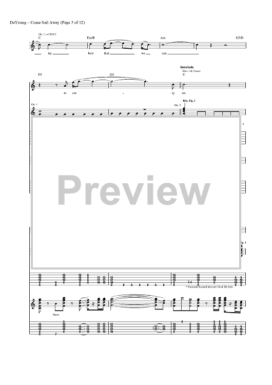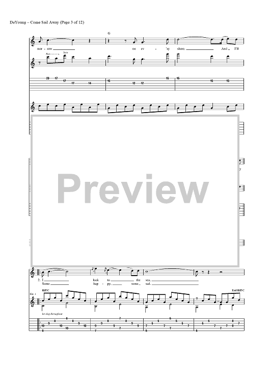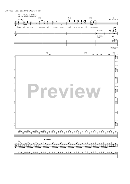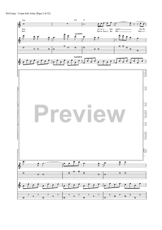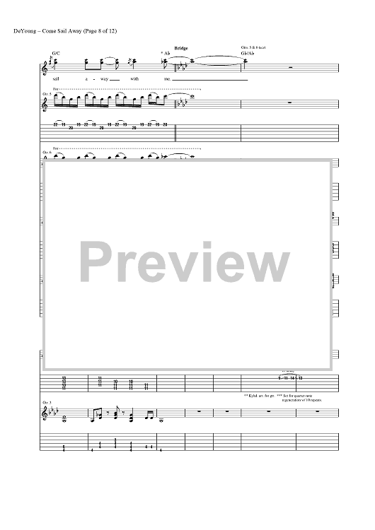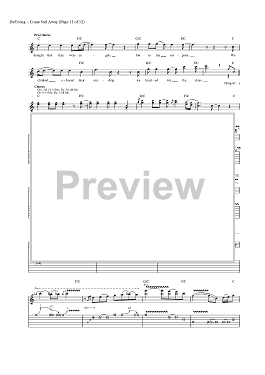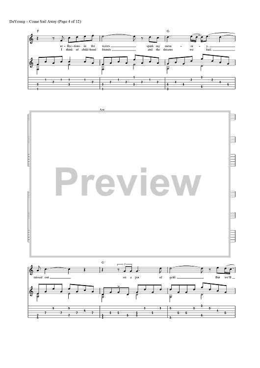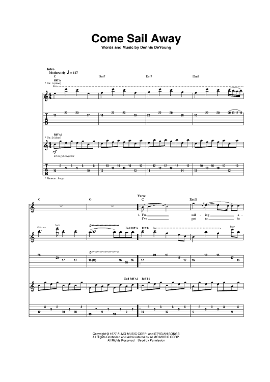 Digital Sheet Music for Come Sail Away by Styx, Dennis DeYoung scored for Guitar Tab/Vocal; id:452304