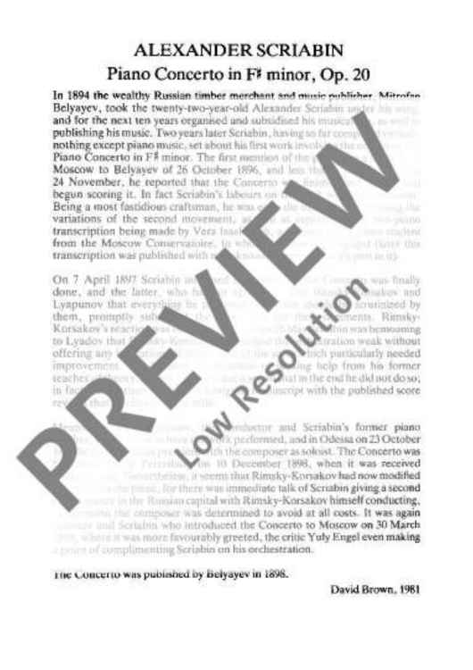 "Concerto F# minor - Full Score" Sheet Music by Alexander Nikolayevich Scriabin