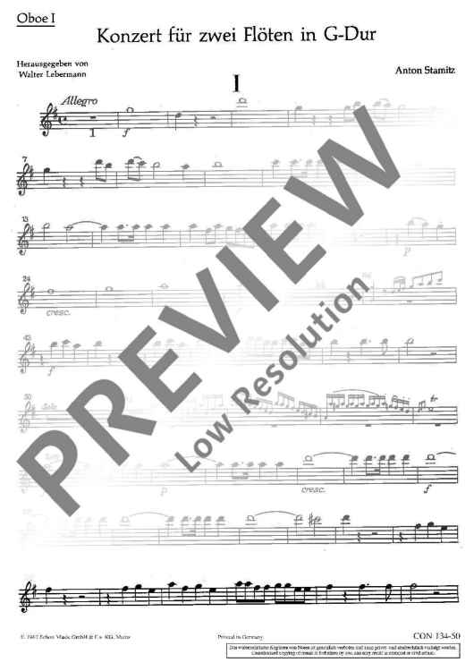 "Concerto G Major - Oboe I" Sheet Music by Anton Stamitz