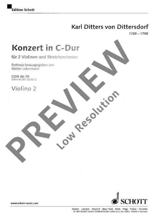 Digital Sheet Music for Concerto In C Major - Violin Ii Rip. by Karl Ditters von Dittersdorf scored for 2 Violins And String Orchestra; id:487523