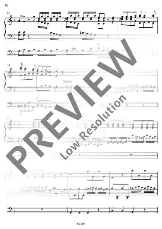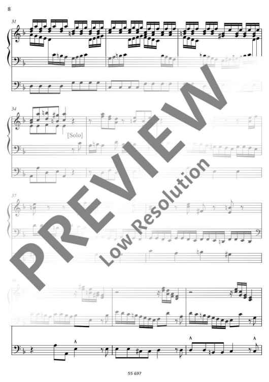 Since Bach's Trio Sonatas, this form of playing with 2 obbligato parts and pedal has been among the most important and elaborate tasks of every organist, the art of polyphonic playing. Jean Guillou has transferred this principle into the language of the 20th century and 'modernized' the old idea. The result is a charming work with clear lines and exciting rhythmic constellations. A rewarding piece for concerts and music lessons.