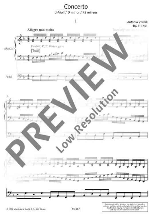 "Concerto In D Minor" Sheet Music by Antonio Vivaldi