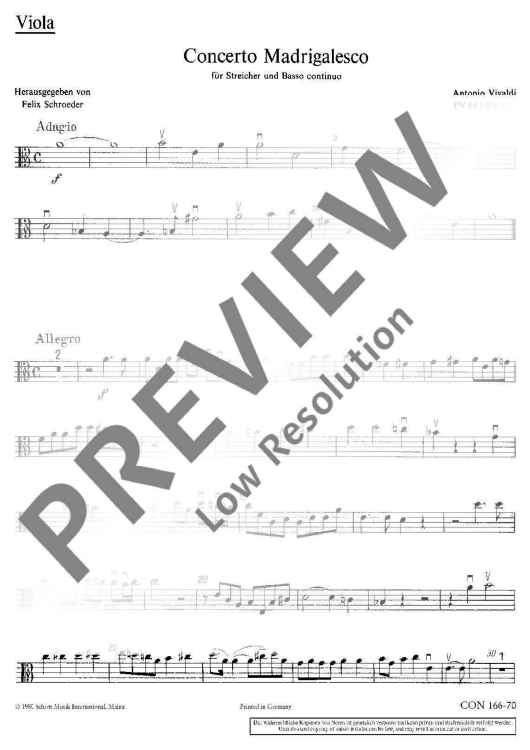 "Concerto Madrigalesco - Viola" Sheet Music by Antonio Vivaldi