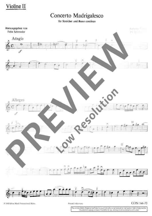 Digital Sheet Music for Concerto Madrigalesco - Violin II by Antonio Vivaldi scored for Strings And Basso Continuo; id:487528