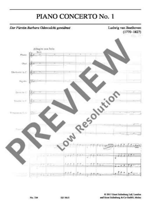 "Concerto No. 1 C Major - Full Score" Sheet Music by Ludwig van Beethoven
