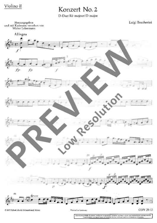 "Concerto No. 2 D Major - Violin Ii Rip." Sheet Music by Luigi Boccherini