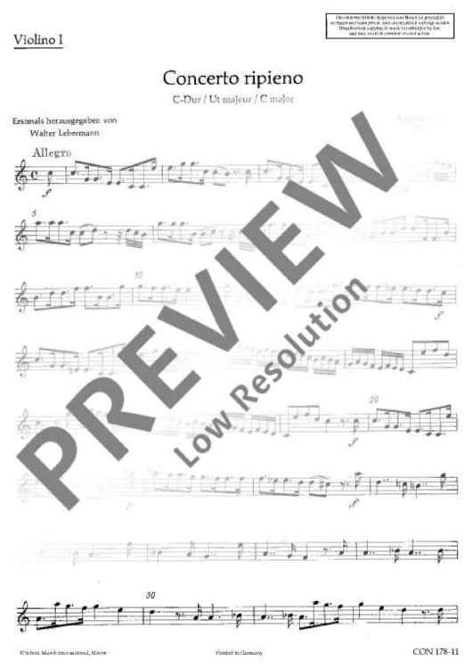 Digital Sheet Music for Concerto ripieno in C major - Violin I by Antonio Vivaldi scored for String Orchestra And Basso Continuo; id:487415