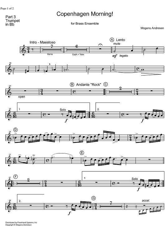 Digital Sheet Music for Copenhagen Morning - Trumpet in B-flat by Mogens Andresen scored for Brass Ensemble; id:323772