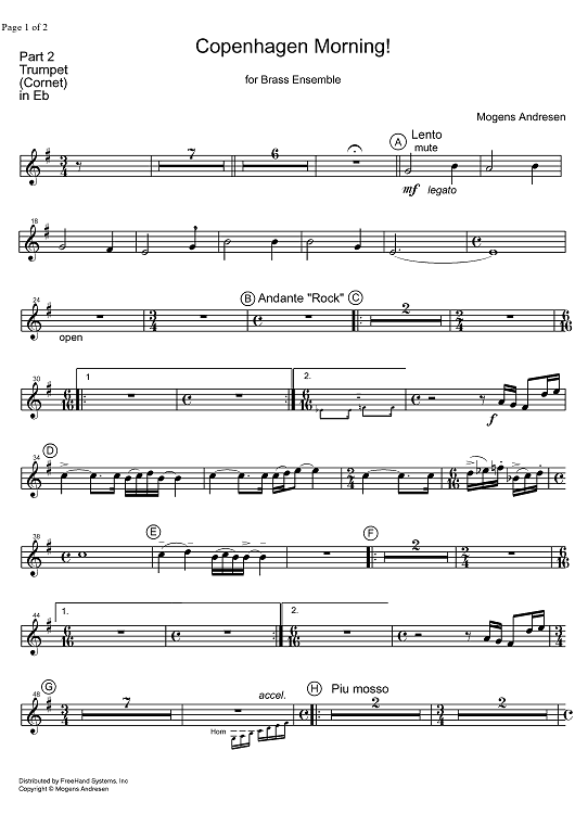Digital Sheet Music for Copenhagen Morning - Trumpet in E-flat by Mogens Andresen scored for Brass Ensemble; id:323773
