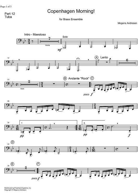 Digital Sheet Music for Copenhagen Morning - Tuba by Mogens Andresen scored for Brass Ensemble; id:323774