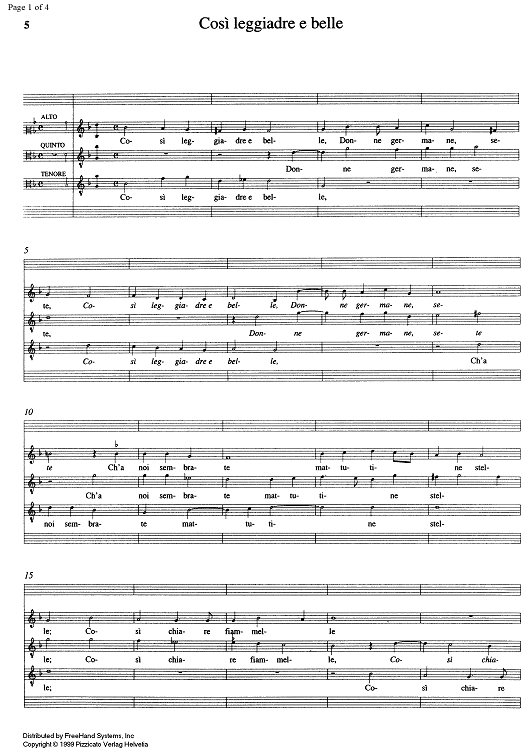 Digital Sheet Music for Cosi leggiadre e belle by , Alessandro Orologio scored for SATB Choir; id:333991