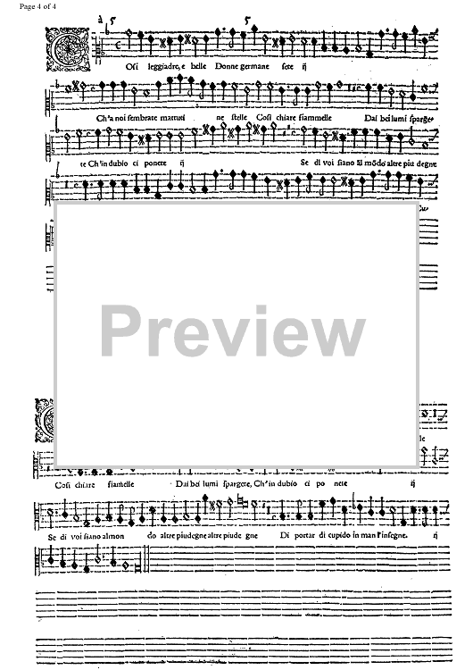 "Cosi leggiadre e belle" Sheet Music by Alessandro Orologio
