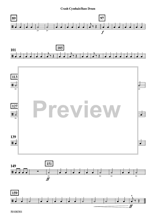 Digital Sheet Music for Cosmopolitan America - Crash Cymbals / Bass Drum by Clarence Barber, Helen May Butler scored for Concert Band; id:509139