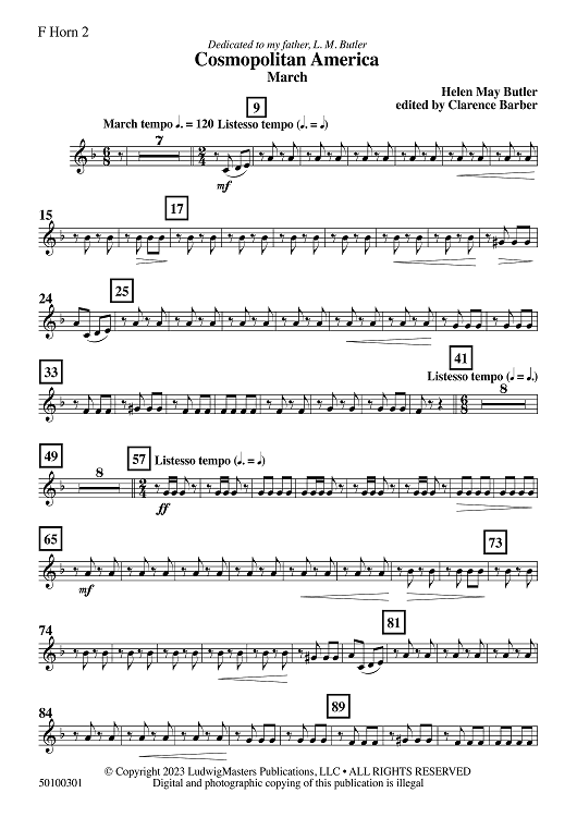 "Cosmopolitan America - F Horn 2" Sheet Music by Helen May Butler