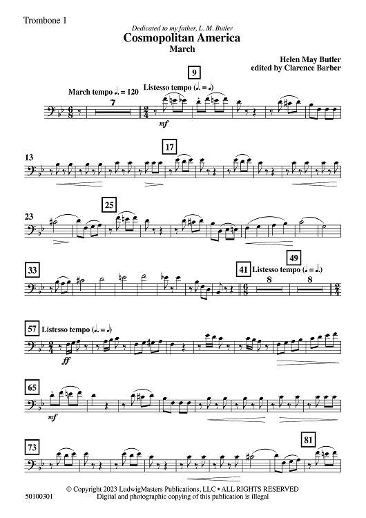 "Cosmopolitan America - Trombone 1" Sheet Music by Helen May Butler