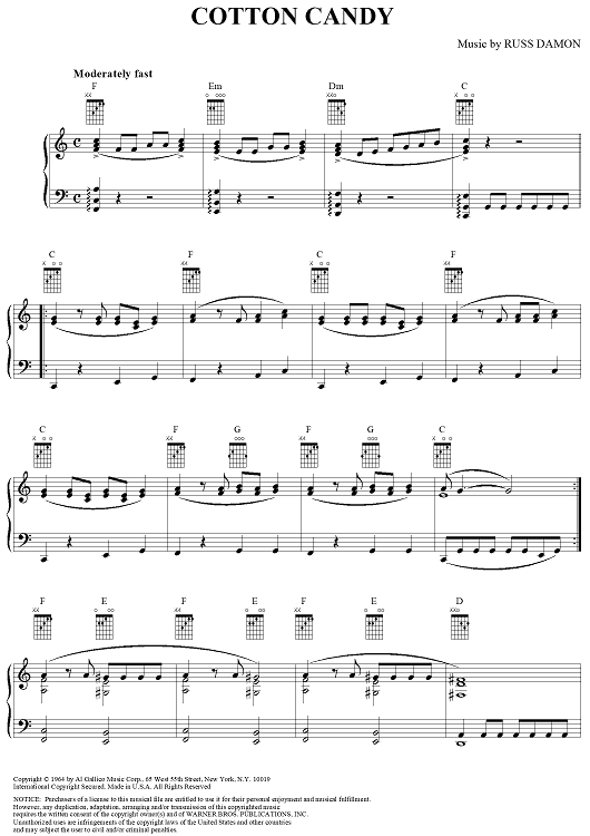 Digital Sheet Music for Cotton Candy by Russ Damon scored for Piano Solo; id:271865