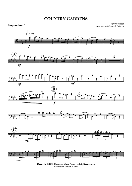 "Country Gardens - Euphonium 1" Sheet Music by Percy Grainger