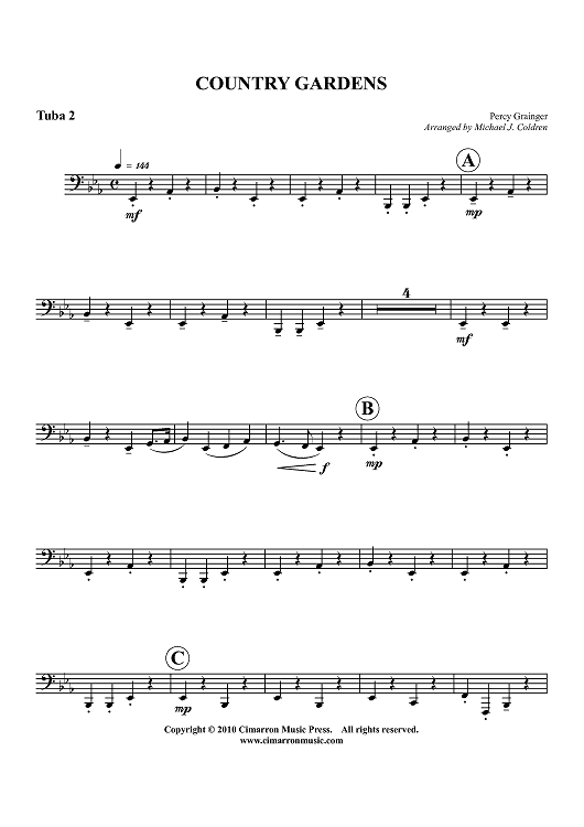 "Country Gardens - Tuba 2" Sheet Music by Percy Grainger