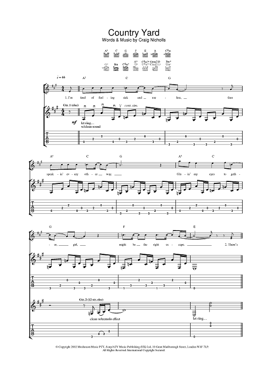 Digital Sheet Music for Country Yard by The Vines scored for Guitar Tab; id:377659