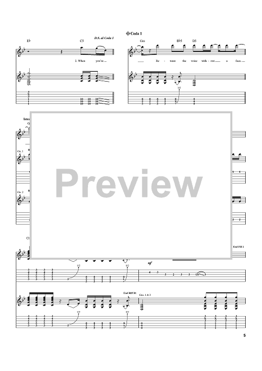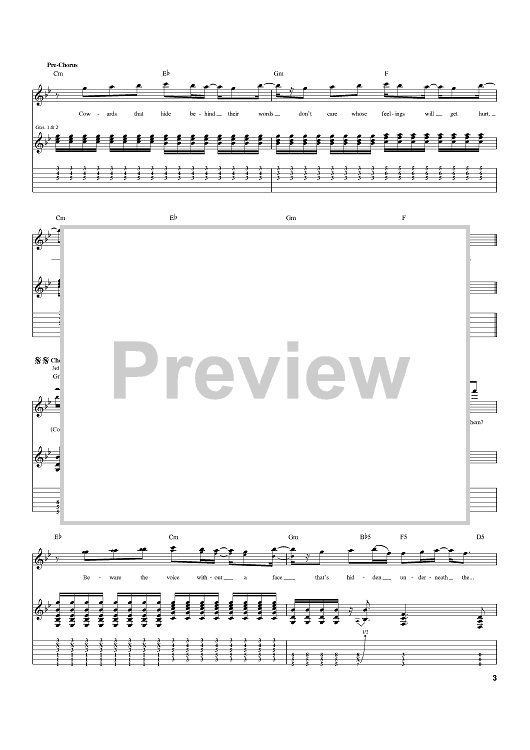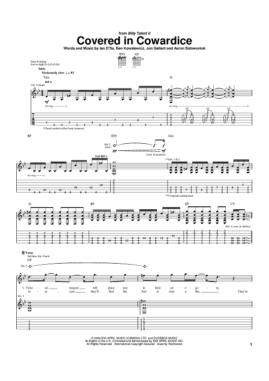 Digital Sheet Music for Covered In Cowardice by Billy Talent, Ian D'Sa, Jon Gallant, Ben Kowalewicz, Aaron Solowoniuk scored for Guitar Tab; id:396561