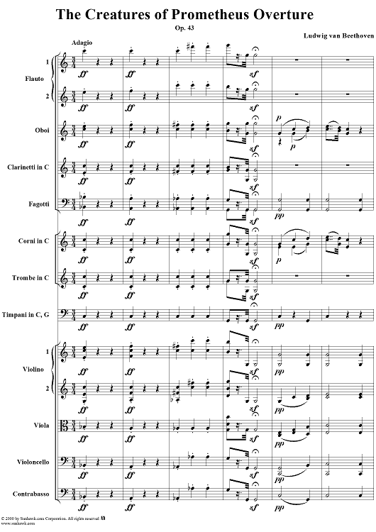 Digital Sheet Music for Creatures of Prometheus Overture, Op. 43 - Full Score by Ludwig van Beethoven scored for Orchestra; id:236355
