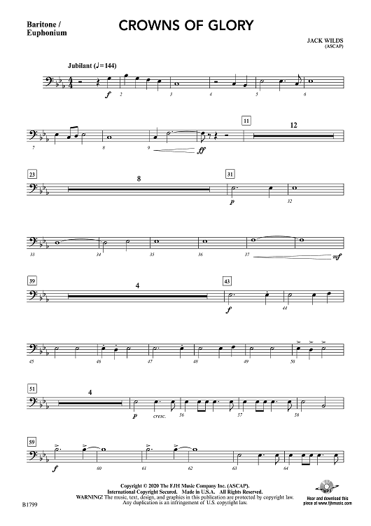 Digital Sheet Music for Crowns of Glory - Baritone / Euphonium by Jack Wilds scored for Concert Band; id:508473