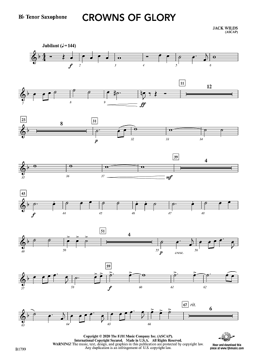 Digital Sheet Music for Crowns of Glory - Bb Tenor Saxophone by Jack Wilds scored for Concert Band; id:508466