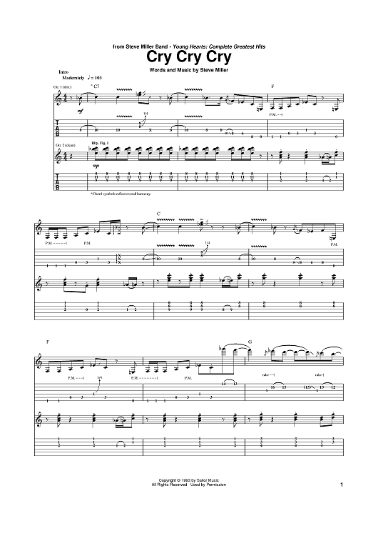 Digital Sheet Music for Cry Cry Cry by Steve Miller, Steve Miller Band scored for Guitar Tab; id:386188