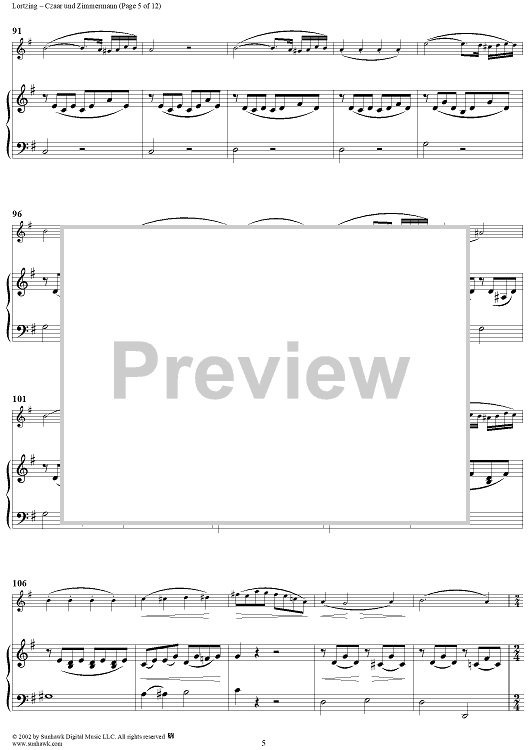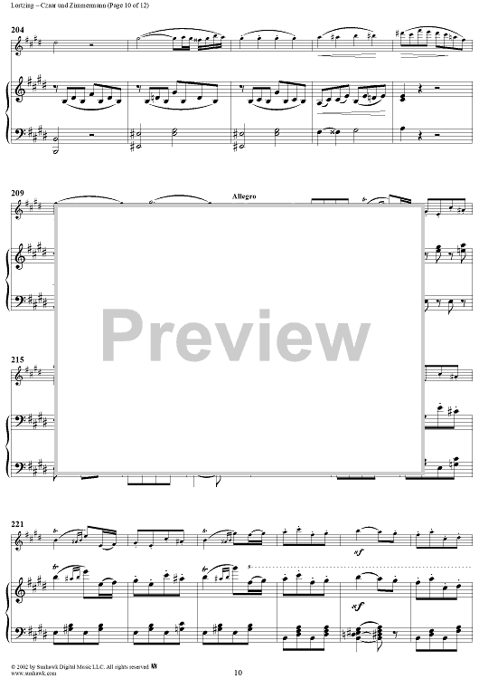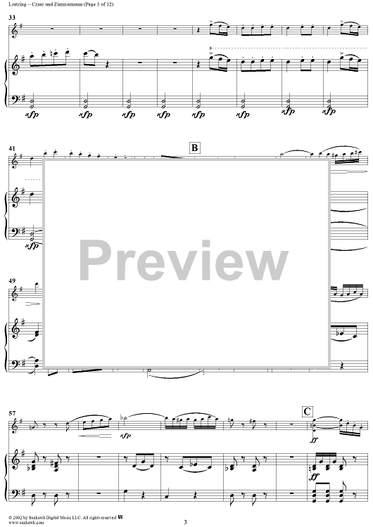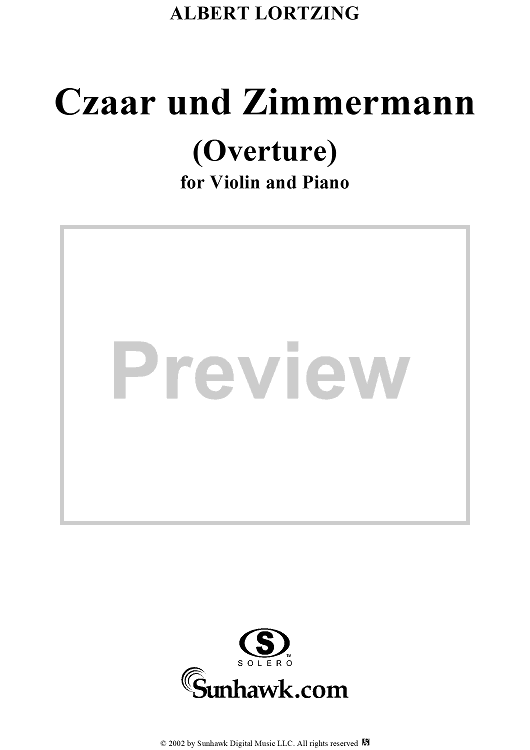 Digital Sheet Music for Czaar und Zimmermann, Overture - Piano by Albert Lortzing scored for Violin/Piano; id:251221