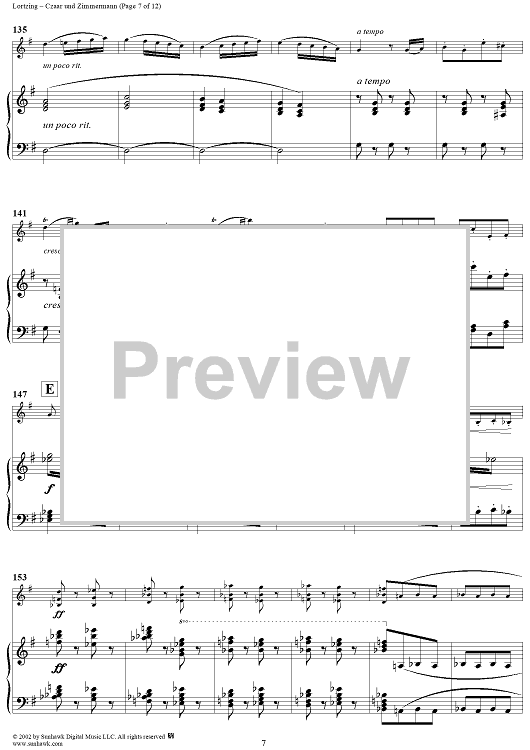 "Czaar und Zimmermann, Overture - Piano" Sheet Music by Albert Lortzing